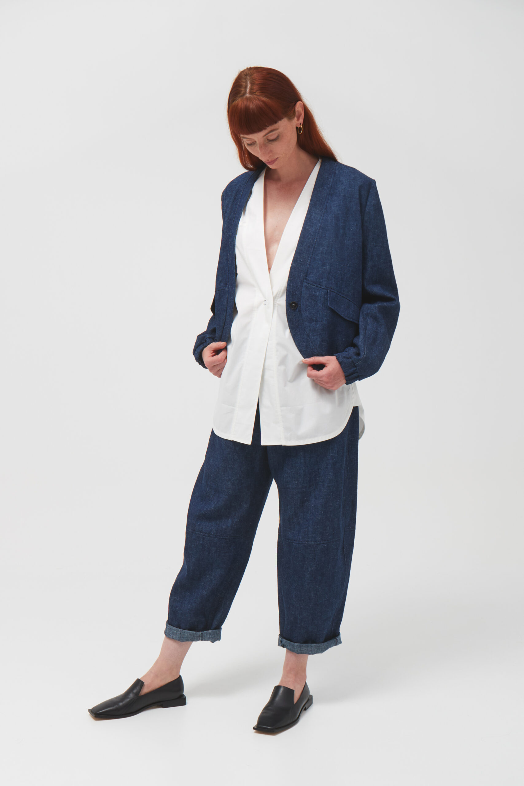 Our popular āKnee-Shaped Relax Trousersā crafted from a durable hemp/cotton blend in a rugged navy blue denim. Designed with a relaxed fit, these trousers feature a distinctive knee-shaped cut for a modern edge and enhanced mobility. The sturdy yet breathable fabric provides all-day comfort, while the elastic waistband ensures a flexible and perfect fit. A bold and versatile piece for any wardrobe.